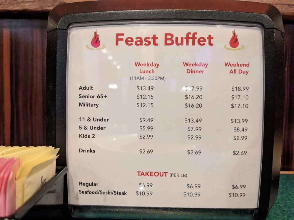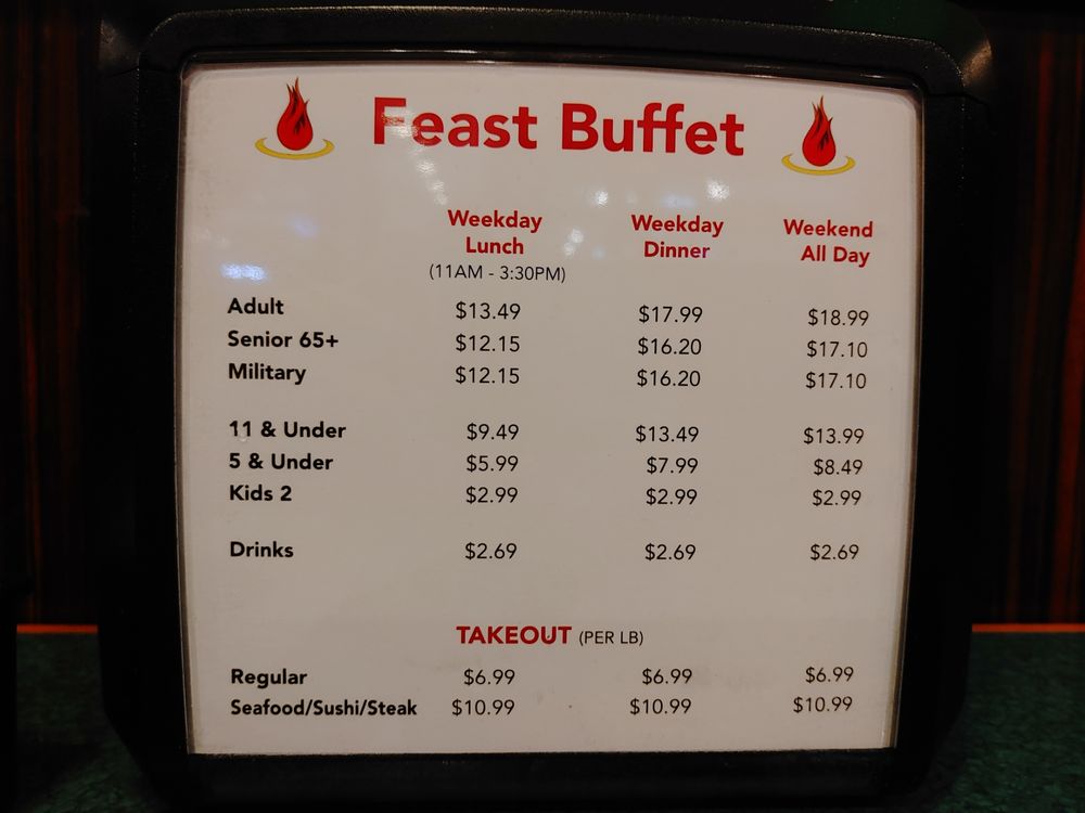 Introducing Feast Buffet, a diverse buffet restaurant located in Katy, TX. With a wide range of options including American, Chinese, Mexican, Japanese cuisines, and an impressive dessert selection, Feast Buffet offers a unique dining experience. Customers praise the fresh and delicious food, as well as the efficient service. The spacious and organized layout of the restaurant adds to the overall dining experience, making it a popular choice for families. The variety of dishes, from sushi to crab legs, caters to every palate. Feast Buffet stands out for its reasonable pricing and value for money, especially with its seafood offerings. Overall, Feast Buffet provides a satisfying buffet experience with quality food and a welcoming atmosphere.